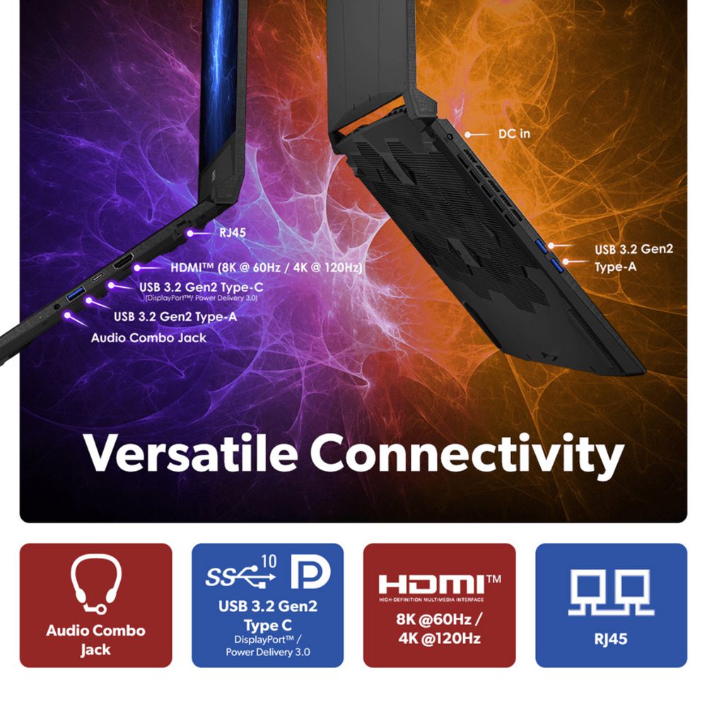 The MSI Katana is a high-performance laptop built for gamers who demand speed, power, and precision. Featuring a ore Intel Core i7 processor, NVIDIA GeForce RTX 5050 graphics, and a vibrant 15.6" 2.5K IPS display with a 165Hz refresh rate, it delivers immersive visuals and responsive performance in a sleek, RGB-lit chassis.